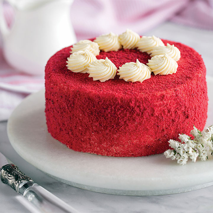 Layers of cream cheese frosting and moist red velvet sponge cakes.